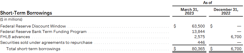 The bank’s borrowings largely reflect its efforts to secure sufficient liquidity to cover the deposit flight.