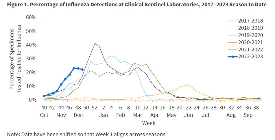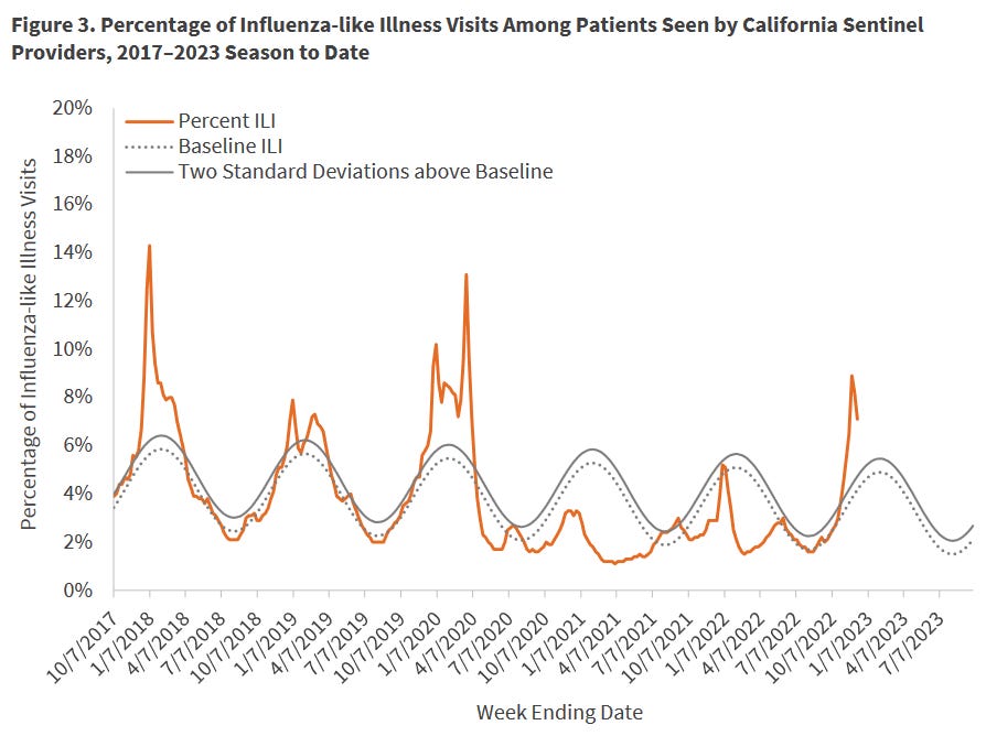 One can, with a little bit of research, find similar articles pushing a similar narrative regarding rising flu cases and increasing hospital burden for just about any major metropolitan area in the United States.