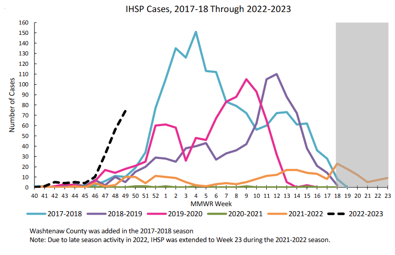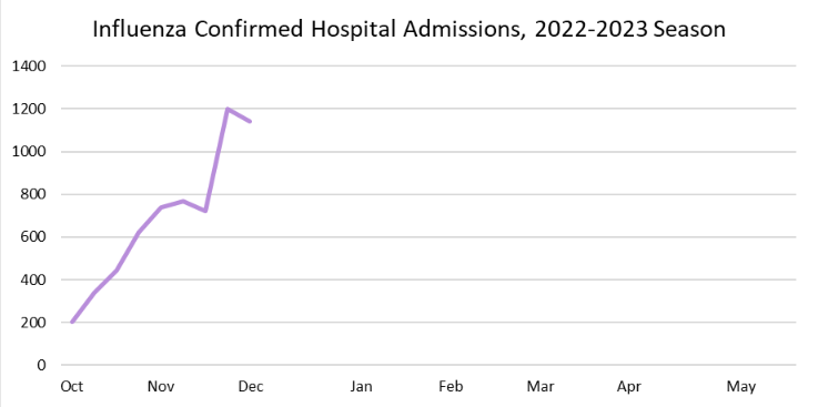 It is true that influenza-associated hospitalizations are on the rise, with 74 for the week ending December 10, for a total of 191 influenza-associated hospitalizations for the 2022-2023 flu season to date.