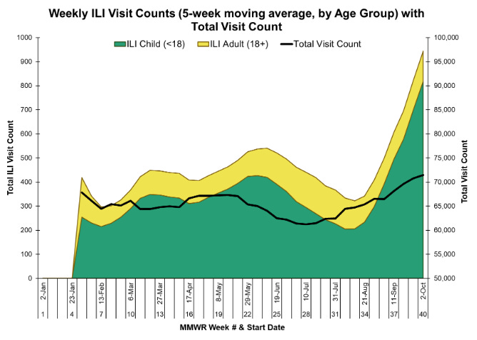 Many states and jurisdictions begin tracking ILI data around the first week in November, while other jurisdictions have October as the tail end of the previous flu season. Thus, while the systems are already in place, regular reporting may not have started in some states as of yet.