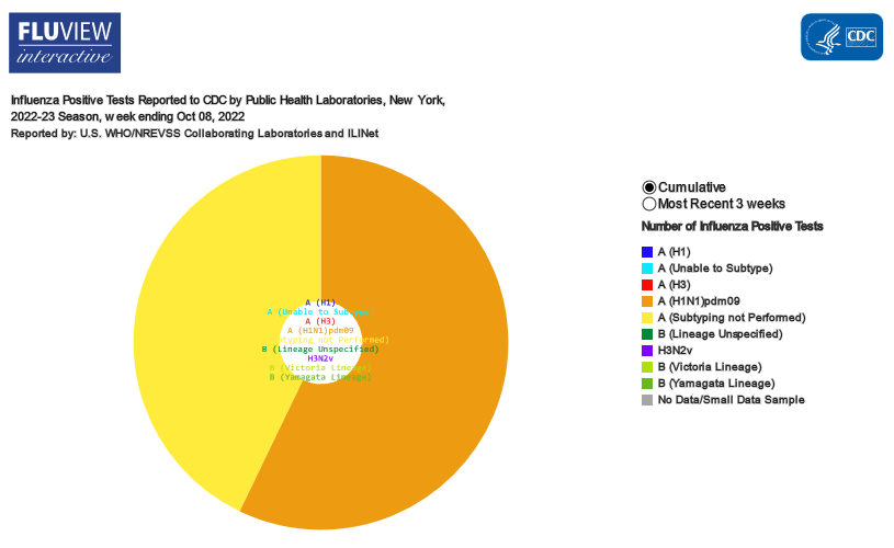 Texas, through its Department State Health Services, provides a weekly Influenza Surveillance Activity Report. The Texas report began tracking for the 2022-2023 flu season as of last week (reports typically lag a week, and so the current report on the Texas site is the latest report, which is from the first week of the “official” infuenza season. As of this writing, there is one report available for the 2022-2023 season, that for the first week.