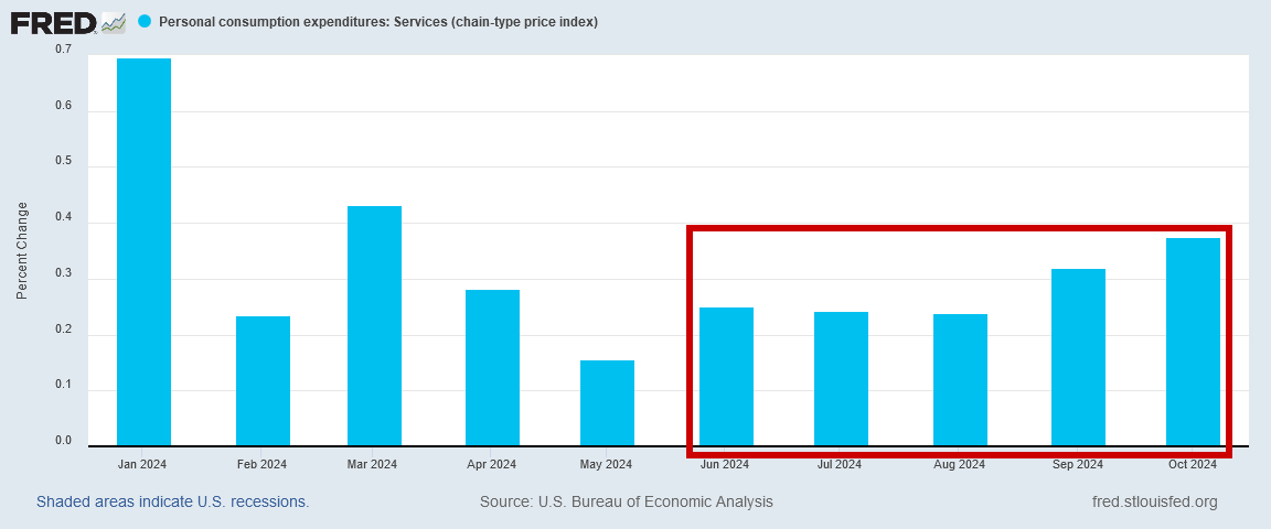 As in keeping with the inflation trends already established, most of that core inflation increase traces back to service price inflation heating up.