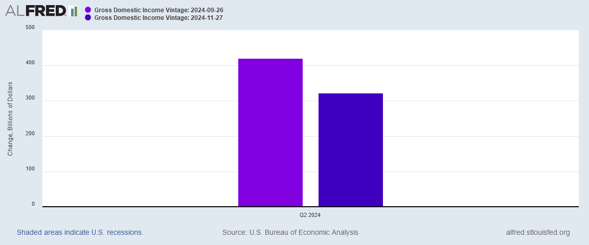 The net effect of these little errors is that Gross Domestic Income for the Second Quarter ended up being overstated by $98 Billion, or 23% of the Advance Estimate level.