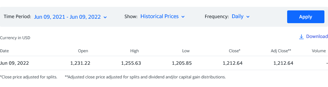 Yahoo! Finance shows both the MOEX and RTS indices—but the RTS index does not report any historical data prior to today (June 9, 2022).