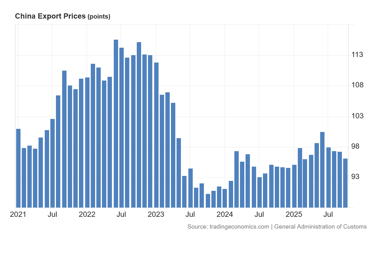 While they have recovered somewhat from a 2024 nadir, China’s pricing power in export markets is not at all what it was in 2022.