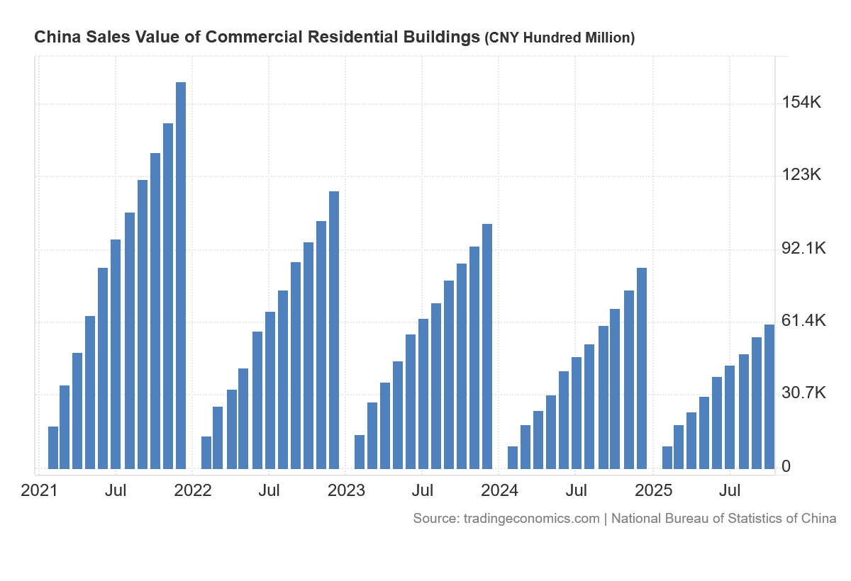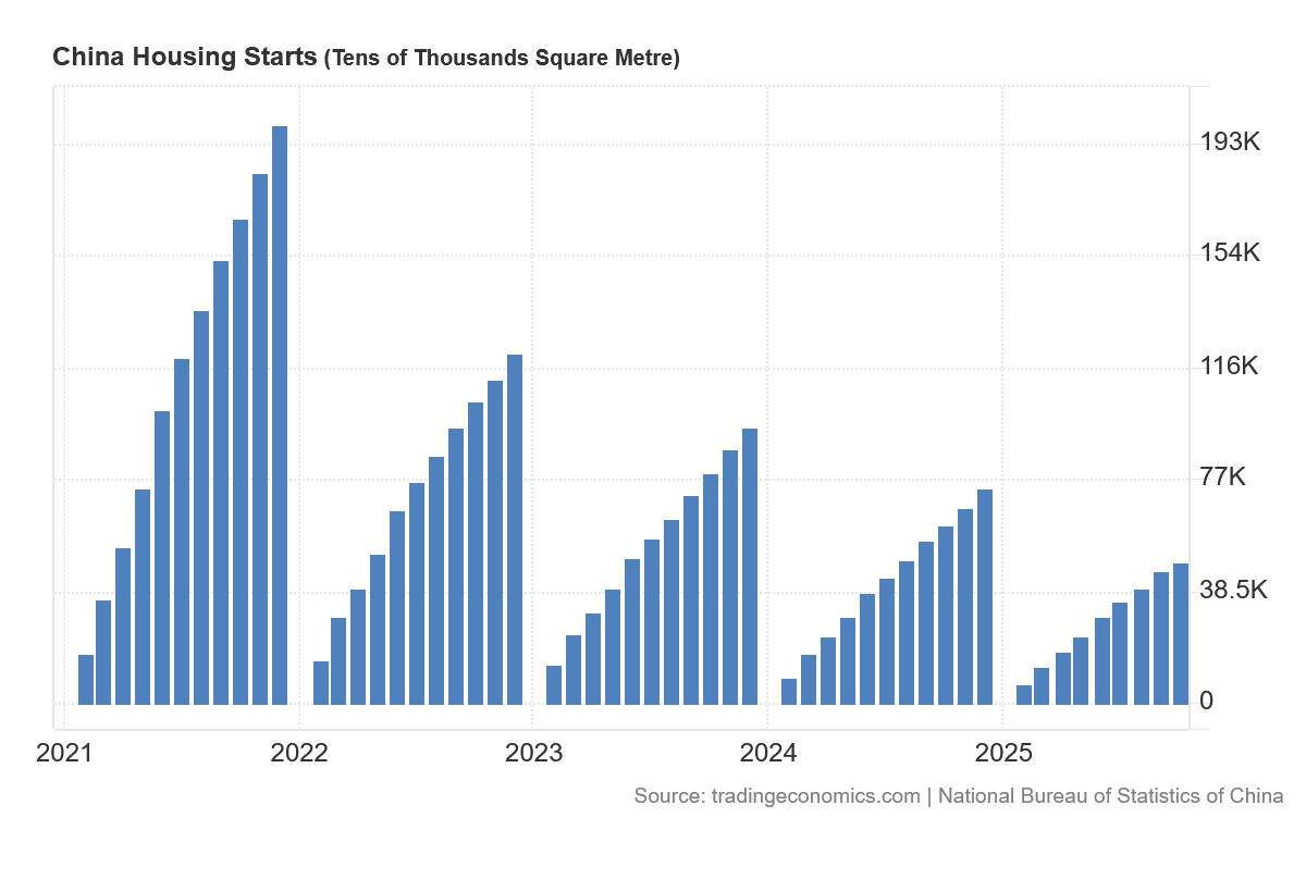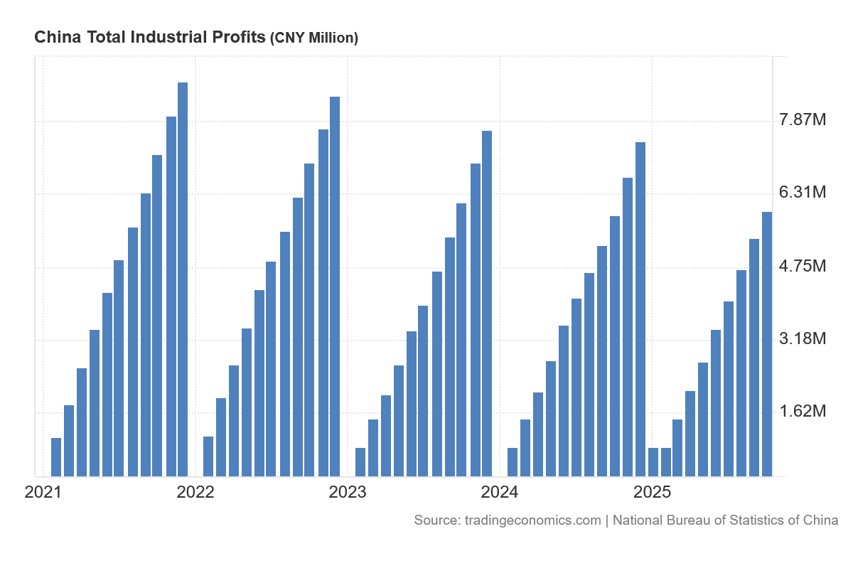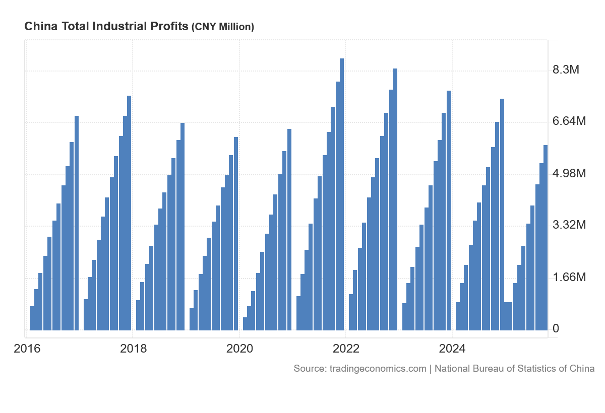 China’s industrial profits year to date for 2025 are less than they were in 2017, which suggests that any stimulative effect from the Pandemic Panic on industrial profits has been expended, and China’s companies are reverting to a pre-panic mean. That is not a good sign for China’s economic future.