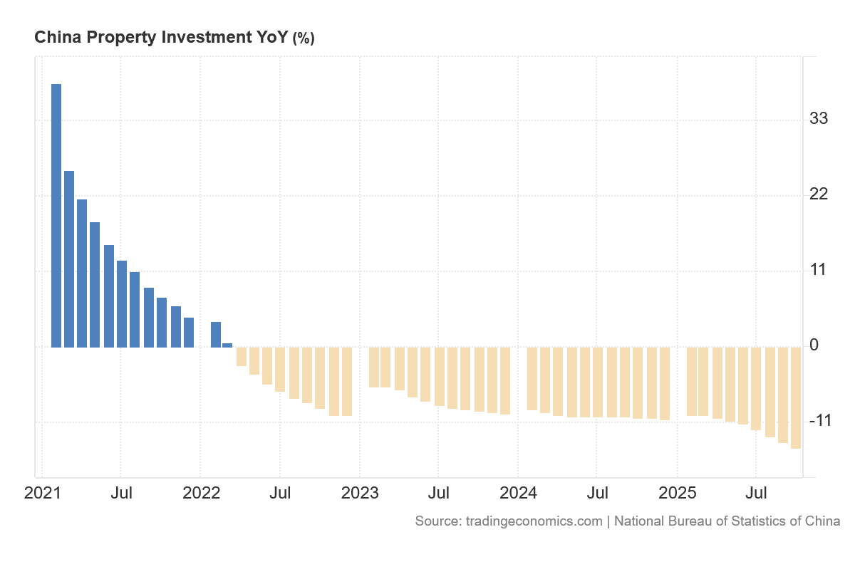 Unsurprisingly, property investment in China has also collapsed.