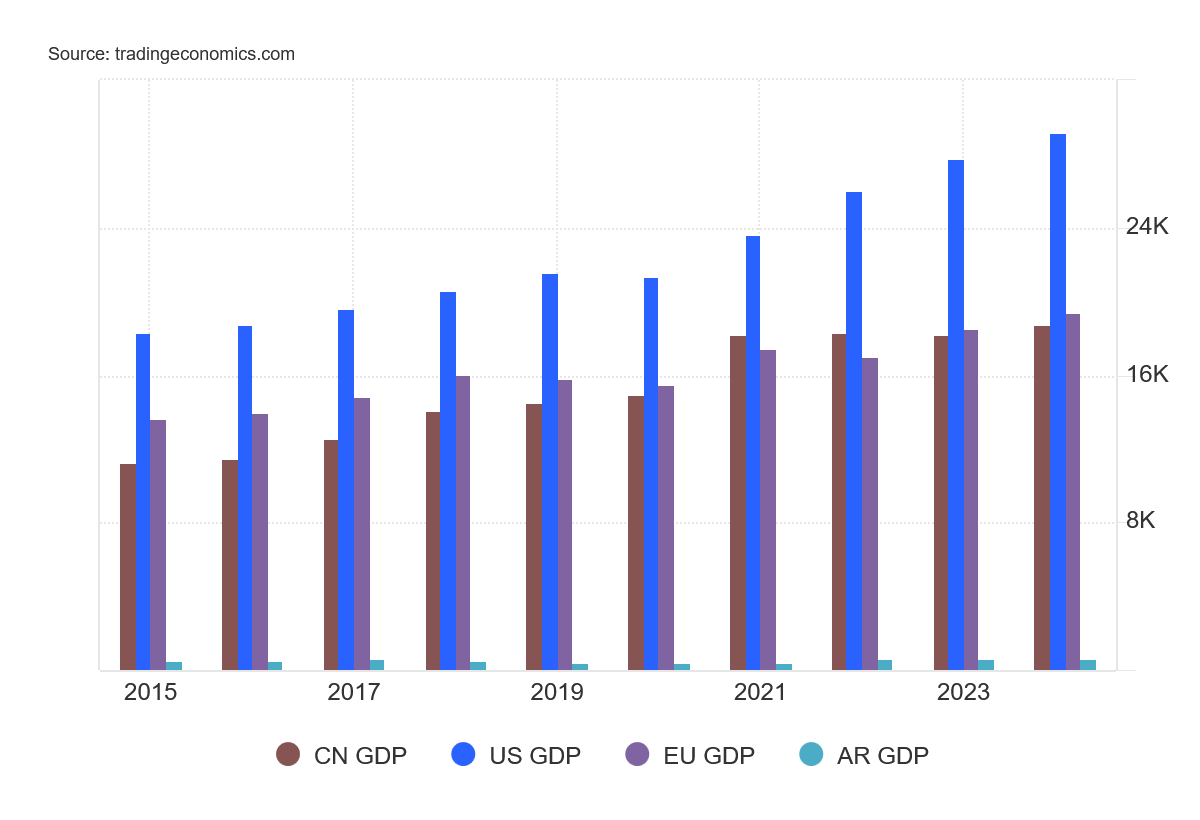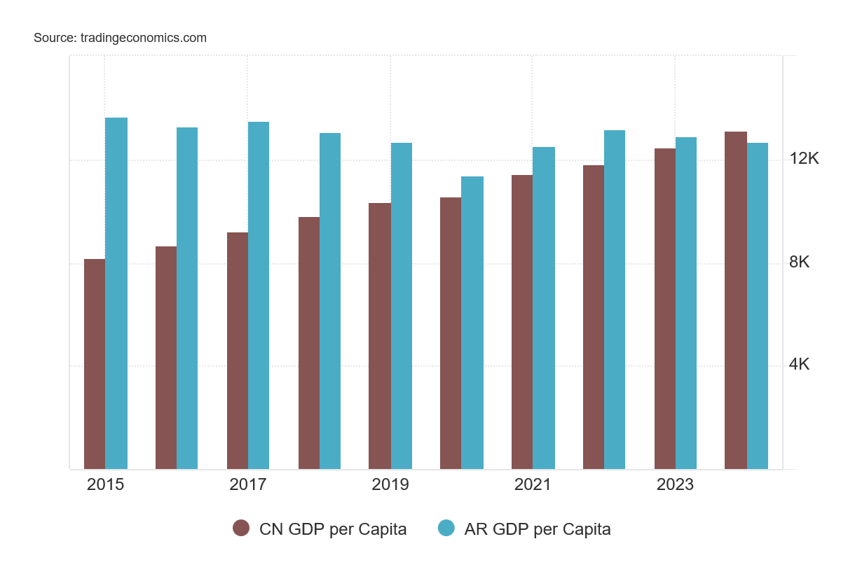 China’s large population is how its aggregate GDP stands more in comparison to that of the US rather than Argentina.