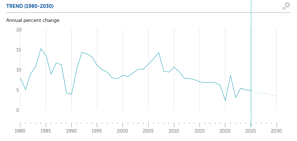 According to the International Monetary Fund, China’s economic growth rate peaked in 2007, with real GDP growing by 14.2%.