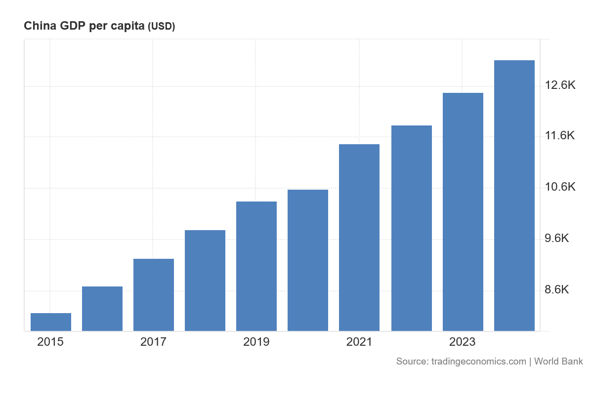 Looked at in isolation, China’s Per Capita GDP has risen steadily over the past decade.