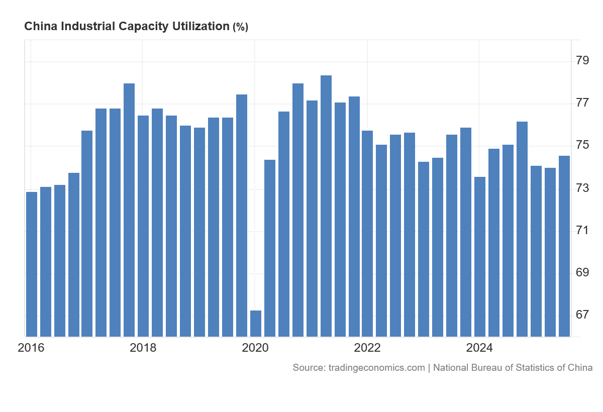 Whether goods are produced for export or for domestic consumption, if industrial capacity is being less and less utilized, the one thing that is certain about overall production is that it is not increasing.