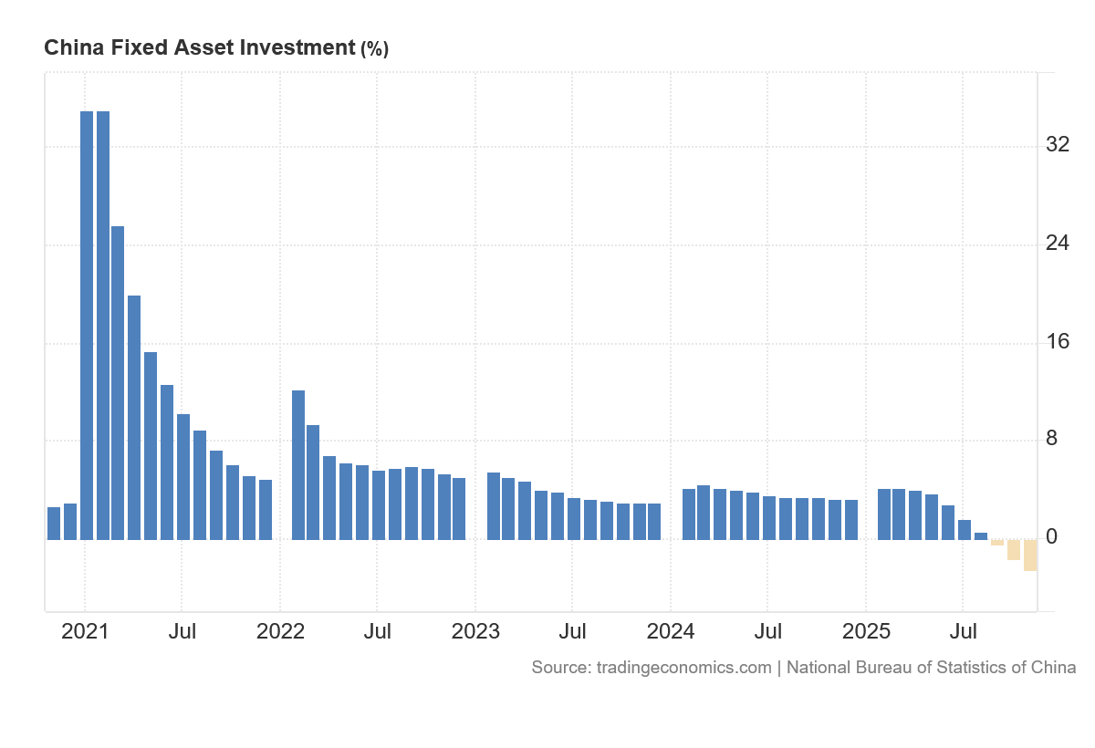 China’s latest Fixed Investment data shows that China’s economy is in fact grinding to a halt, posting a far greater than expected decline in November.