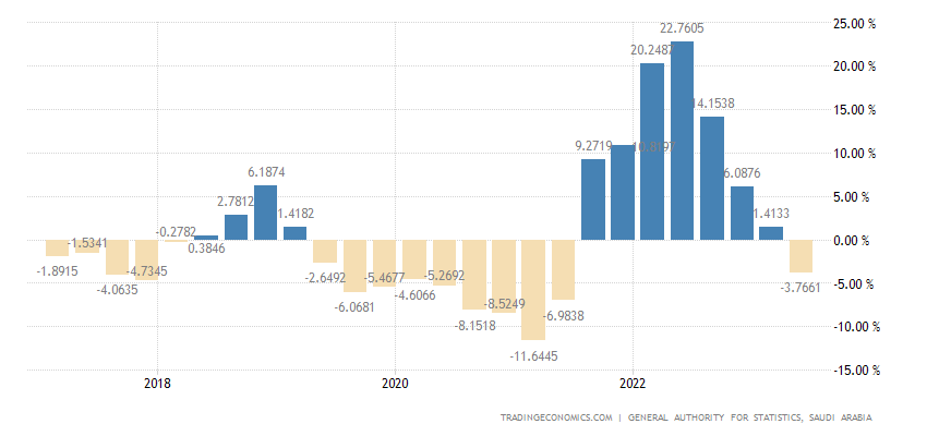 A 17% year on year decline for any economic sector in any country is significant. When it is the oil sector in Saudi Arabia, that decline borders on outright collapse, yet that is what happened to Saudi Arabia in the 3rd Quarter.