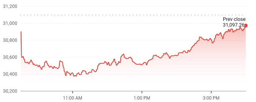 Yesterday’s trading left much of the financial media muddled and confused. The Dow’s “rallying into the close” was a steady move upward from an intraday low of 30,376.83 reached just after 11am Eastern Time.