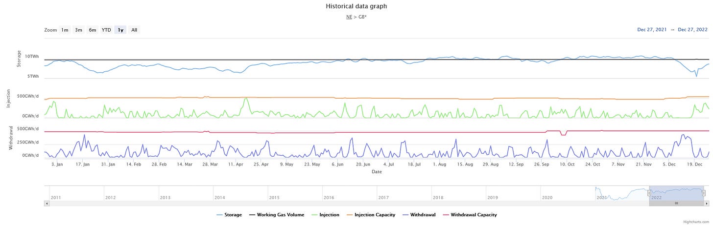 Not only did the natural gas price in commodity markets decline in December, but the UK actually managed to replenish its gas storage volumes over the past week, even with declining prices.