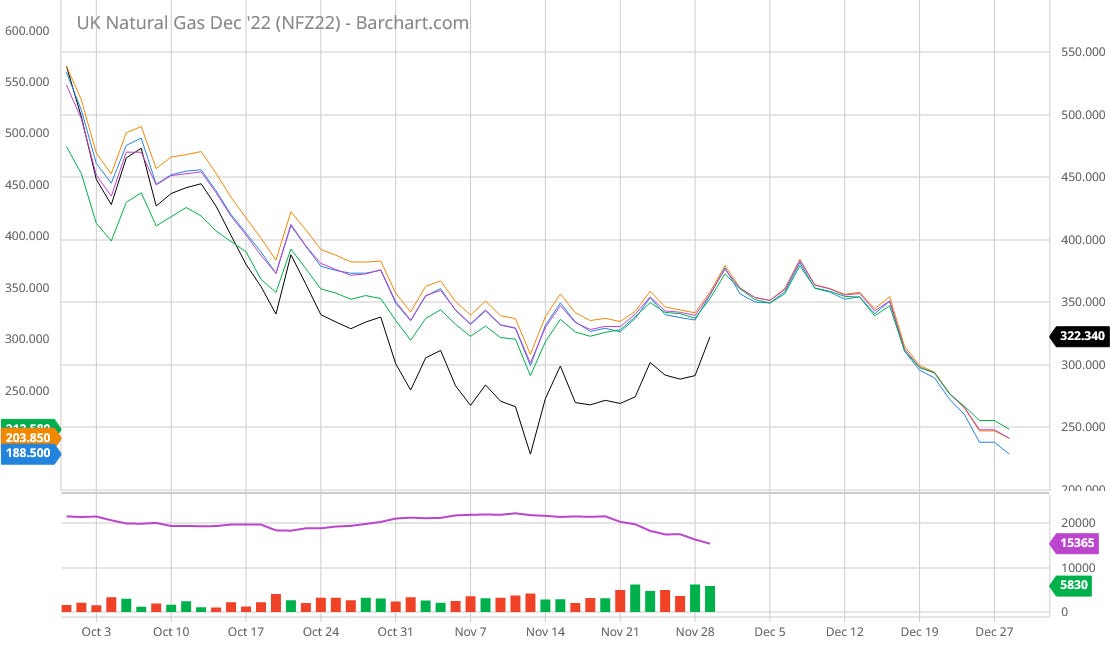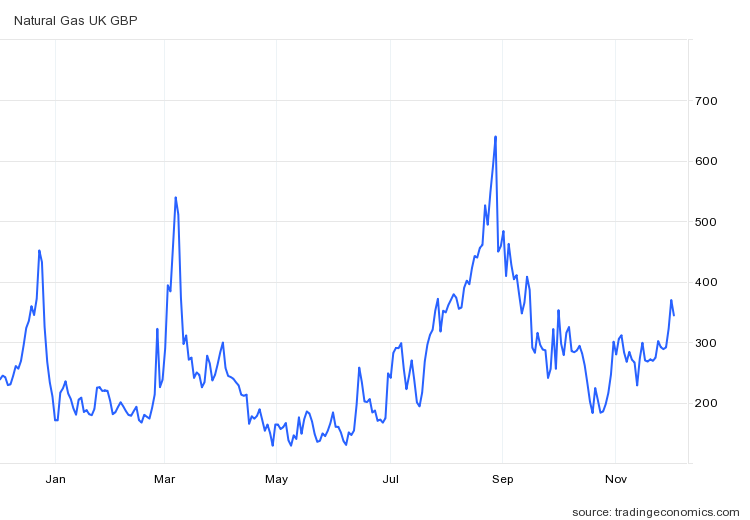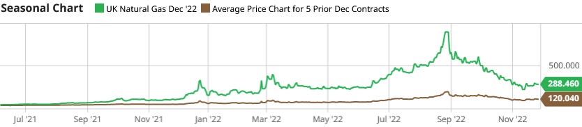 It is certainly true that the ICE natural gas futures contract for December delivery closed at 322.34 pence per therm as of the November 29 expiration date, nearly three times the five year average for the December contract.