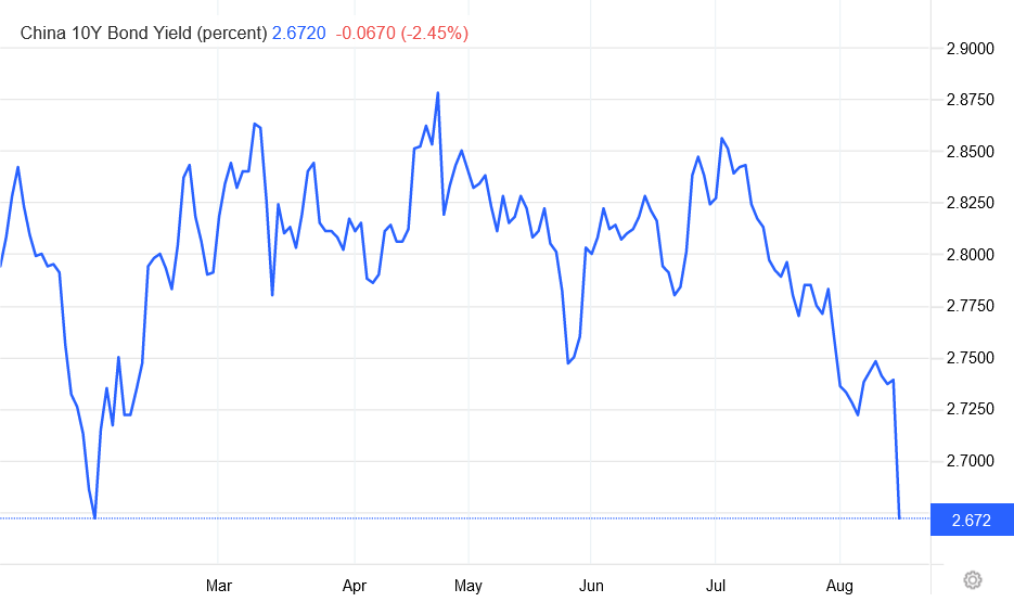 The People’s Bank of China cut its rate on a one-year loan to 2.75% from 2.85% and injected an extra 400 billion yuan ($60 billion) into lending markets after growth in factory output and retail sales weakened in July and home sales fell by double digits.