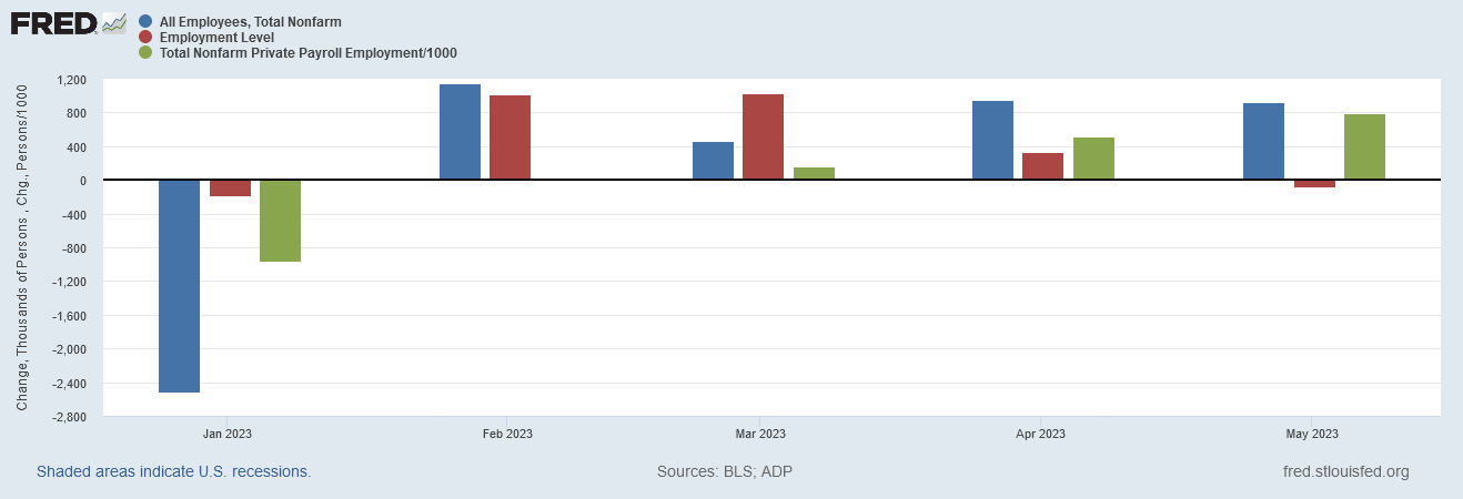 On an unadjusted basis, in May there were 790,000 new jobs created, according to the ADP National Employment Report.
