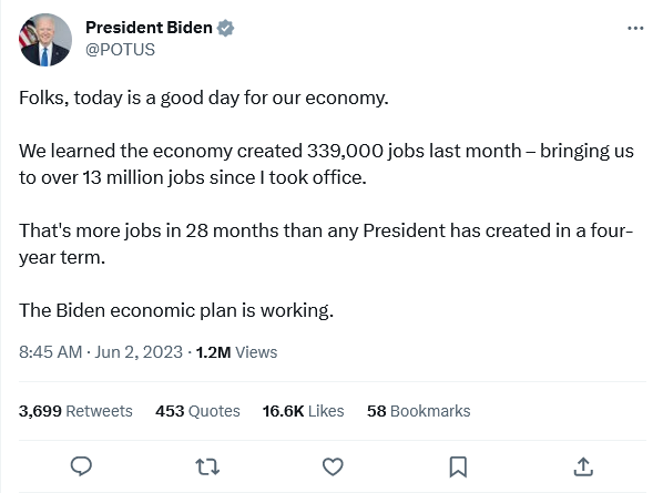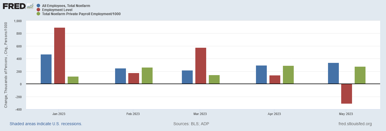 On a seasonally adjusted basis, in May there were 339,000 new jobs created according to the Establishment Survey.