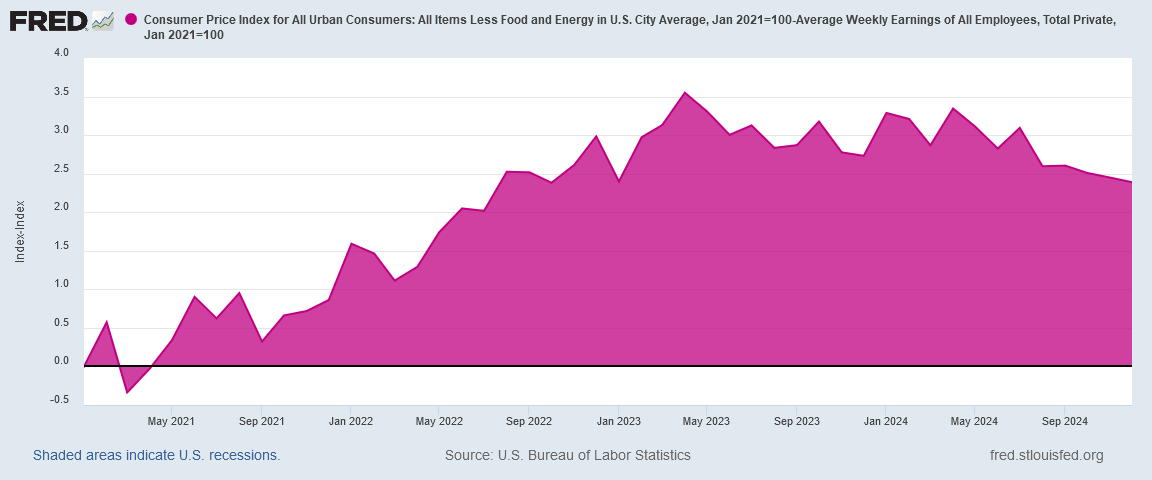 In most months during 2024, average wages in the United States rose by a larger percentage than consumer prices. From the worker’s perspective, that’s always the desirable trend. Wages rising higher than prices means the worker is getting more money in “real” terms.