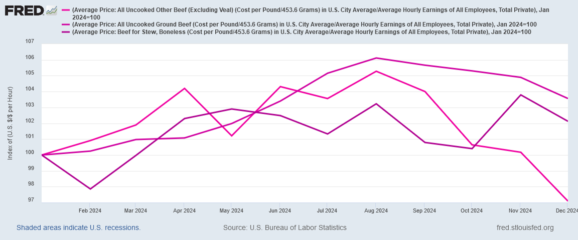 The labor costs for Beef and pork had risen during the first half of 2024, but began to trend down in the second half.
