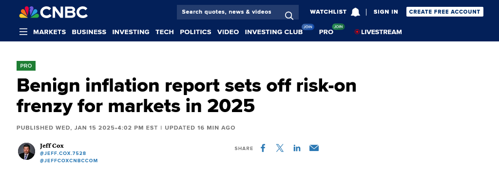 Financial journalist Charles Payne said something interesting the other day on Fox News touching on the final Consumer Price Index Summary report for 2024: “Expectations and narrative—that's the game Wall Street plays.”