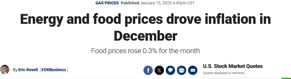 Fox News was somewhat more cynical, noting that energy and food prices drove the bulk of the overall rise in the December CPI data.