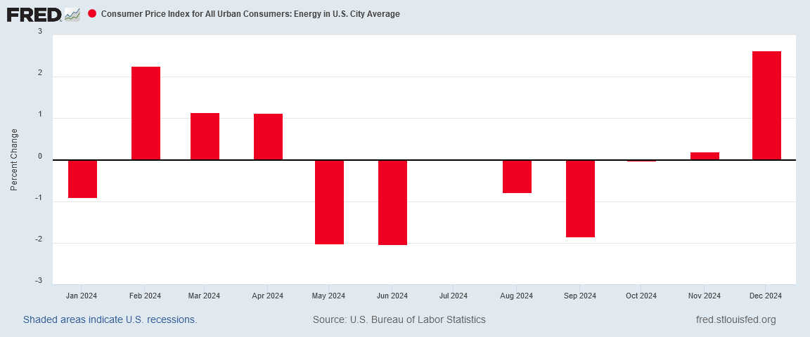 Energy prices rose by a greater month on month percentage in December than they had done so for all of 2024.