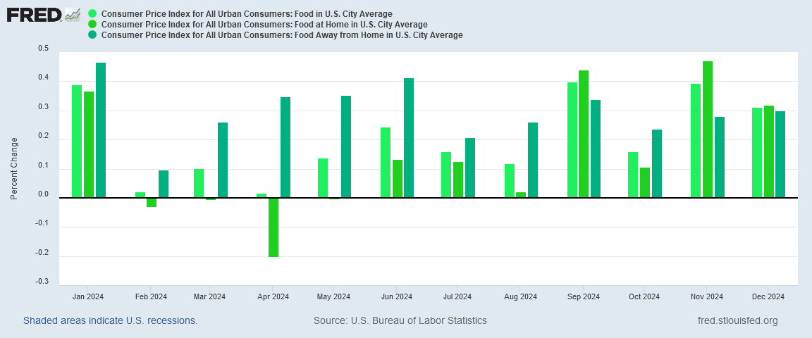 With food price inflation also having been significantly greater than headline consumer price inflation in 2024, food prices continuing to move upward means that consumers can count on continued pain at the grocery store checkout counter. Food price inflation may not be getting dramatically worse at the moment, but it certainly is not getting any better.