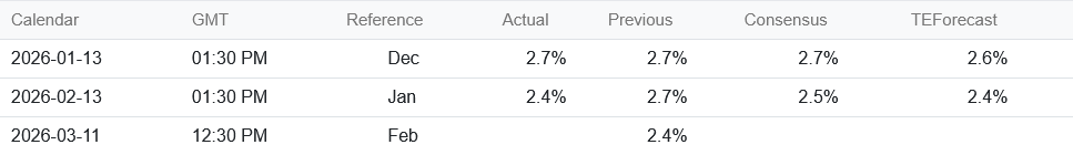 Printing at 2.4% put the year on year inflation rate below the Wall Street consensus of 2.5% and right on line with the Trading Economics forecast.