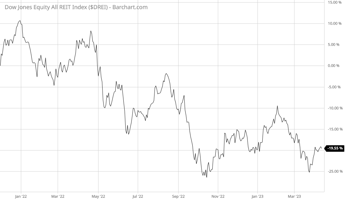 Wall Street is anticipating an extremely bad year for commercial real estate. The market value of real estate income trusts (REITs), have dropped some 20% since peaking in late December of 2021.