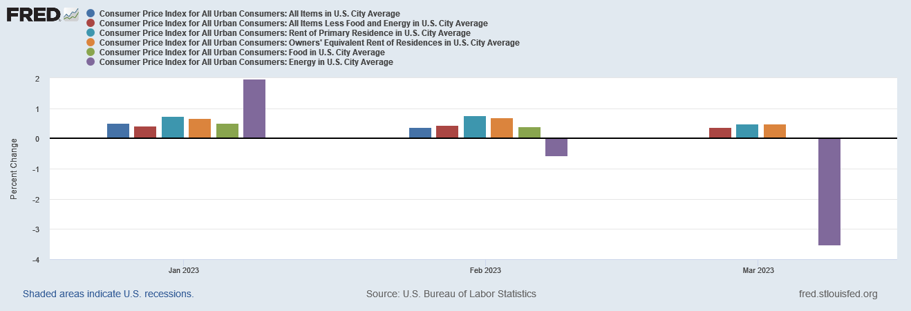 The March Consumer Price Index Summary contained some legitimately good news. Headline consumer price inflation dropped by a full percentage point from March, energy prices declined outright, dropping 3.5 percent on a seasonally adjusted basis, and even shelter price inflation eased somewhat.