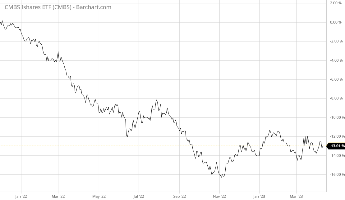 Commercial mortgage backed securities, as an asset class, have also shed some 13% in market value since the start of 2022.