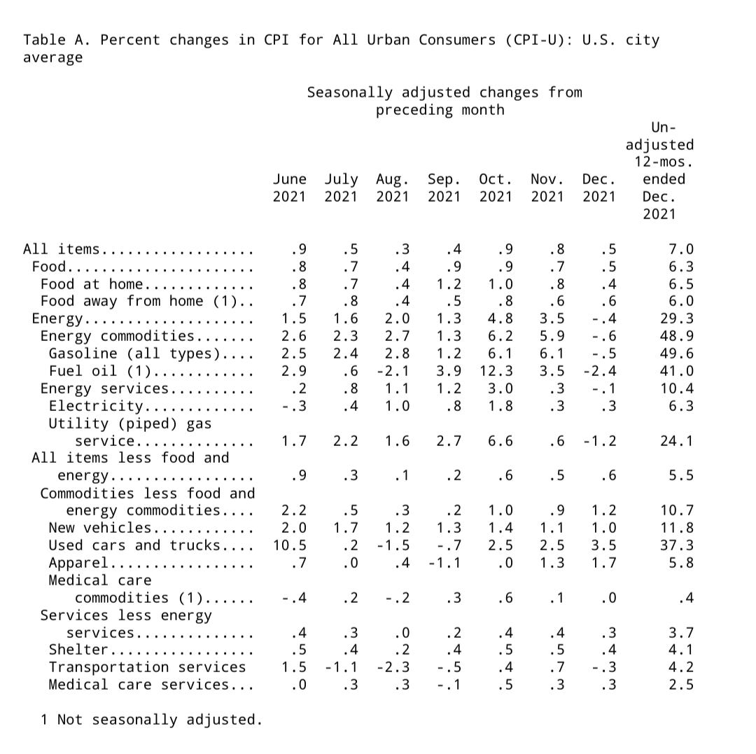 In January, the 12-month change in food prices was 7%, with energy prices rising 27%. Shelter costs 4.4% more than in January 2021, while new vehicles cost 12.2% more and used vehicles 40.5% more.