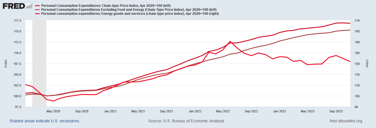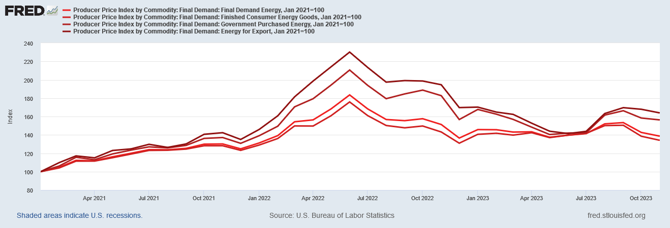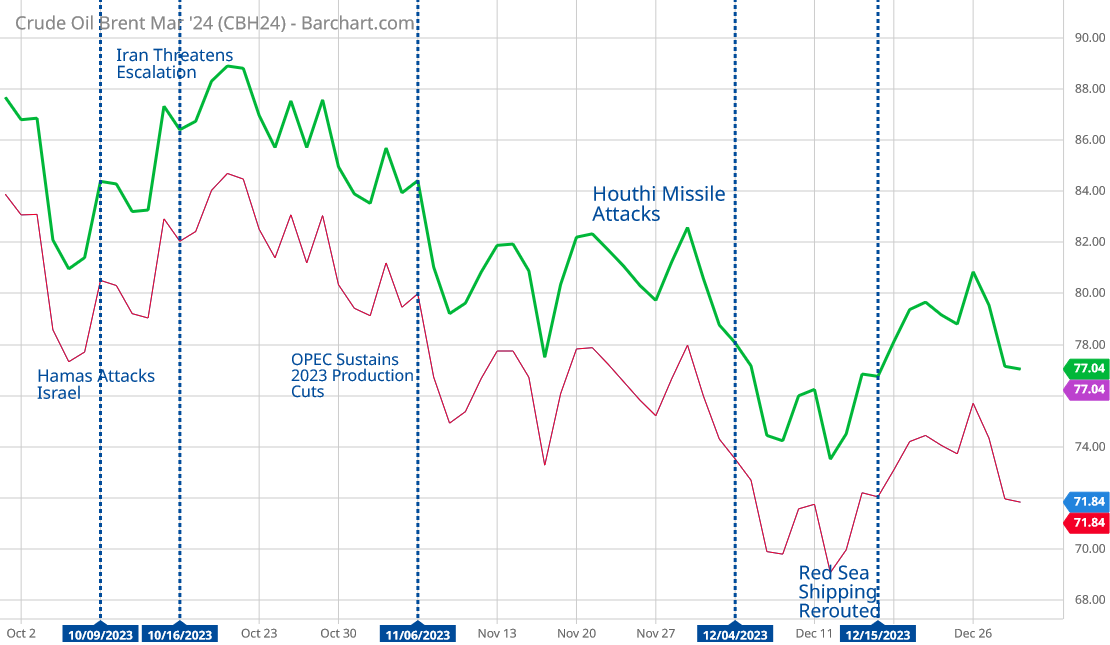 Despite the ongoing war between Israel and Hamas, oil prices (and therefore energy prices) have continued to fall, even as groups such as the Houthi rebels in Yemen continue to try to widen that conflict.