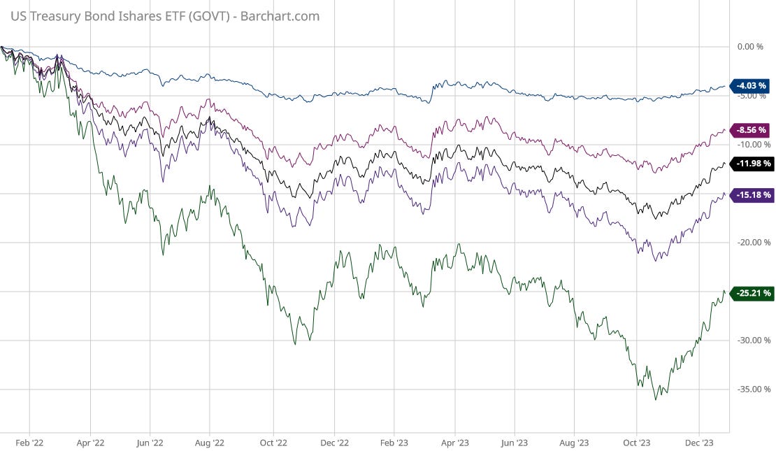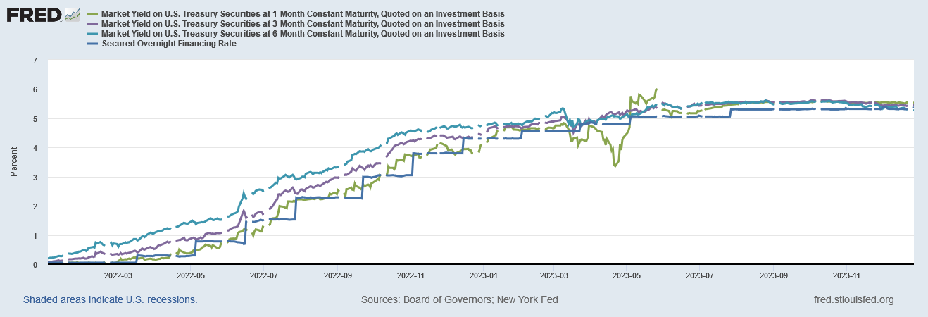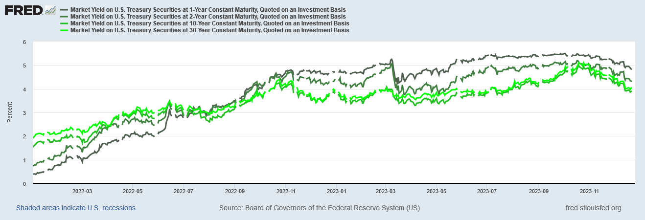 Short term yields, on the other hand, were not nearly so volatile, largely holding steady through the end of 2023.