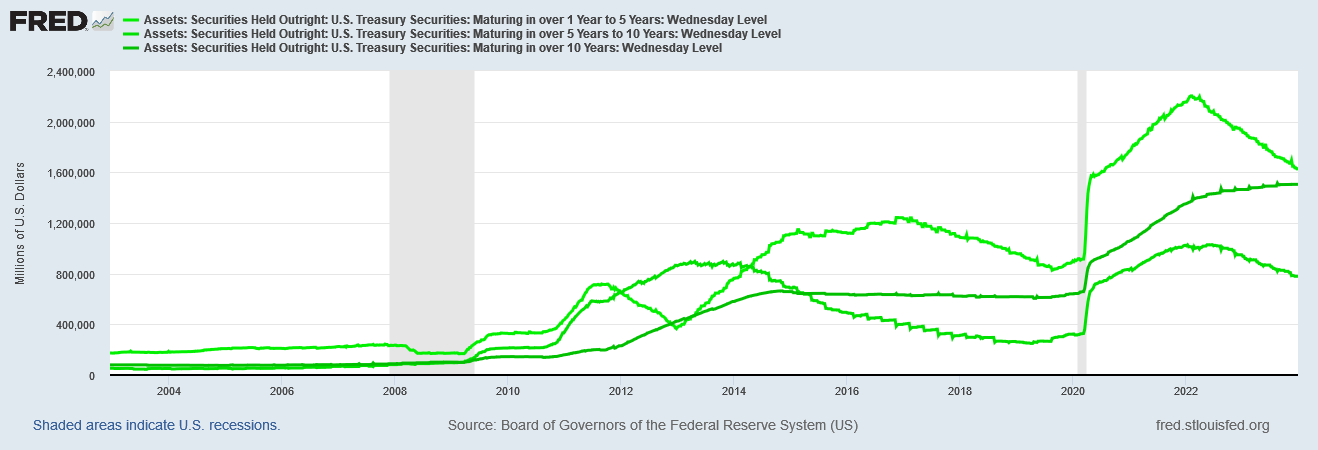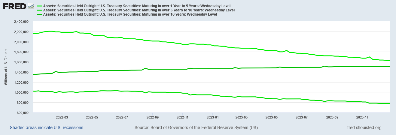 As of December 20, the Fed’s balance sheet is approaching holding more securities with maturities over 10 years than securities with maturities in the 1-5 year range.