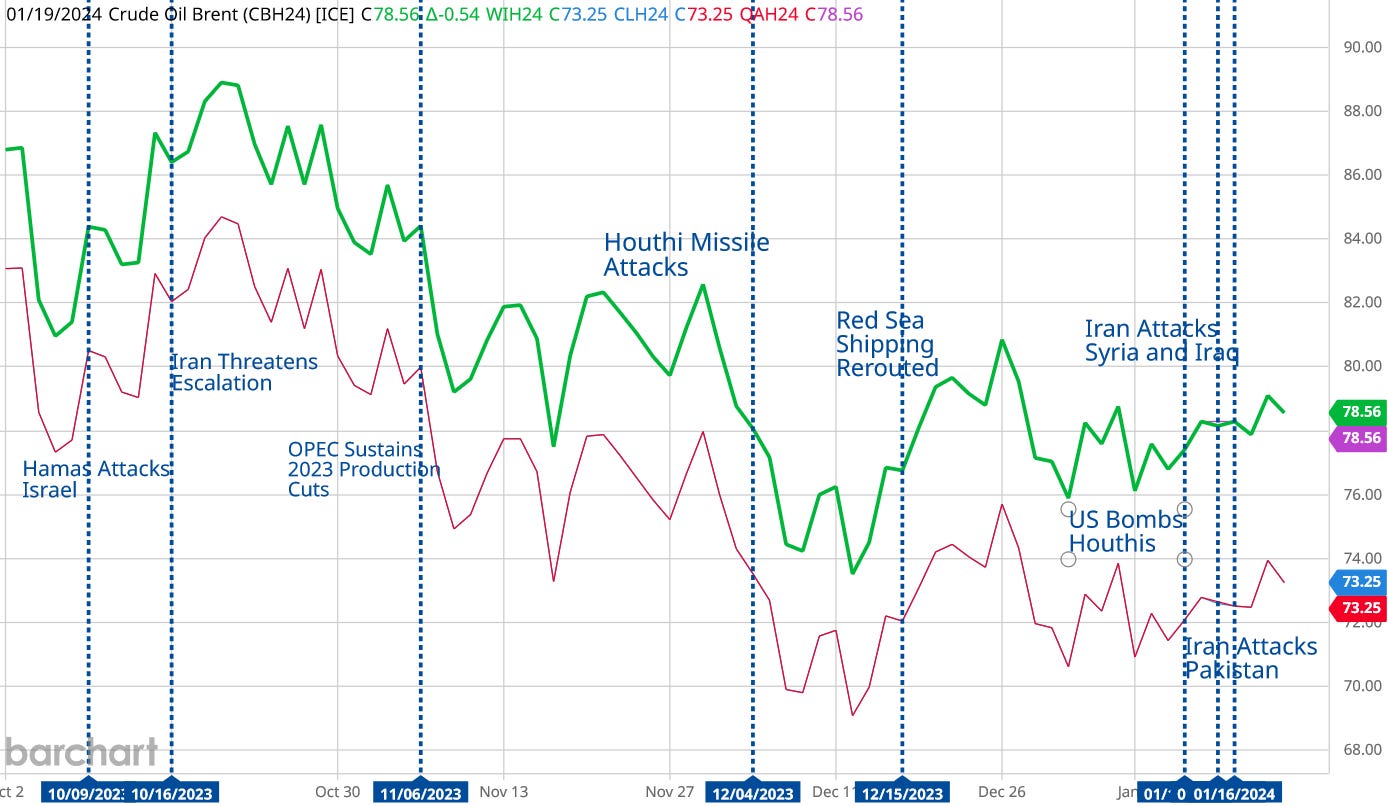 Yet almost as quickly as the prices of oil rose in after Iran’s attacks on Syria, Iraq, and Pakistan, they started to fall again.