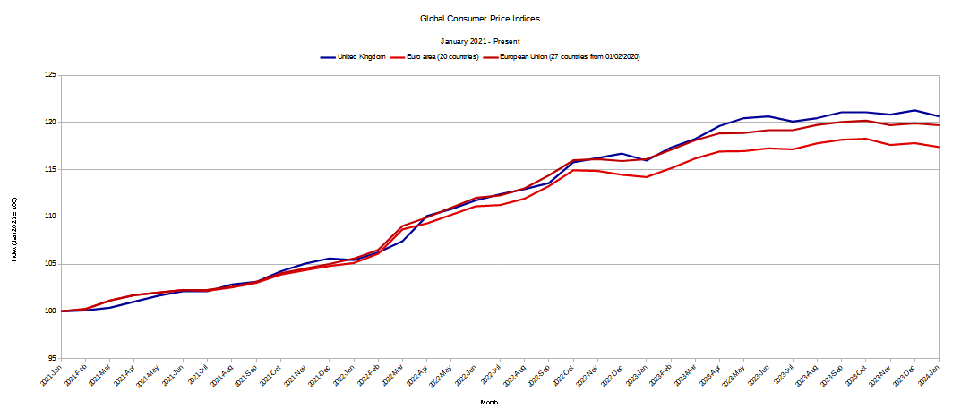 While the broad indices themselves are showing decline, we need to be careful about making too much of a case for deflation. When we look at the rate of inflation year on year, prices are still higher than they were a year ago in Europe.