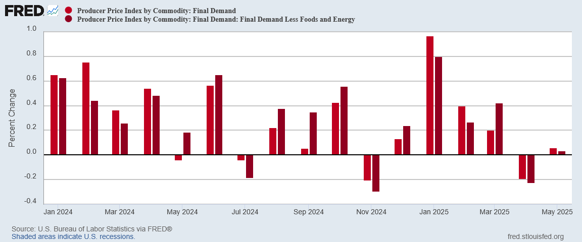 The Producer Price Index Summary generally gets far less attention than the Consumer Price Index Summary. Even I do not comment on the PPI all the time, in large part because it is released one day after the Consumer Price Index Summary, and so most of the major news bits on inflation are already addressed.