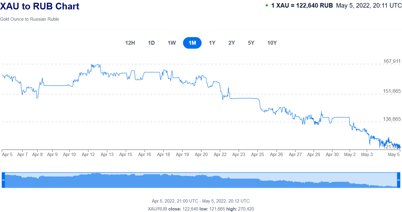 With the March declaration and implementation of the “gold peg”, Putin arguably succeeded in buying a little time in which to resolve the Ukrainian War and begin working to return Russia to full participation in global commerce, participation which has been largely disrupted by the NATO sanctions.