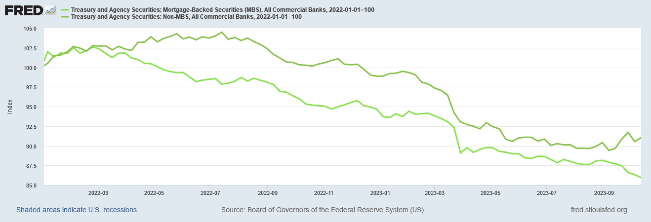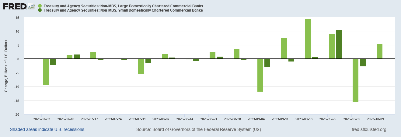 Not all banks have reversed their selling patterns on Treasuries. Smaller banks have, for the most part, continued to reduce their holdings of non-MBS securities.