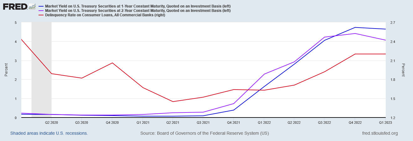 It is hardly coincidental that household default rates have risen as interest rates have risen.