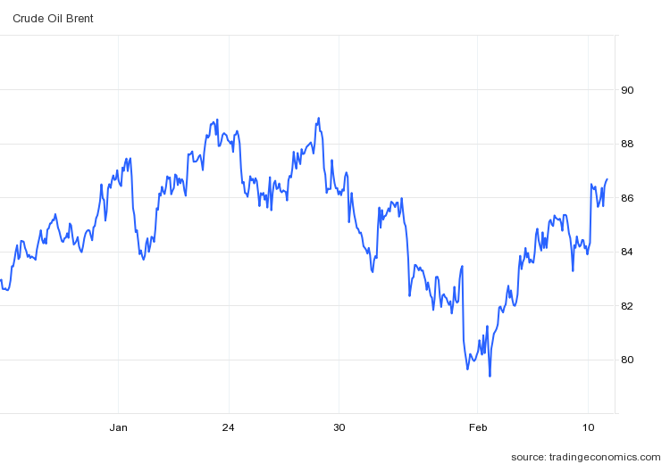 While the price of crude oil has been rising over the past few days, for most of January Brent crude was drifting somewhat lower.