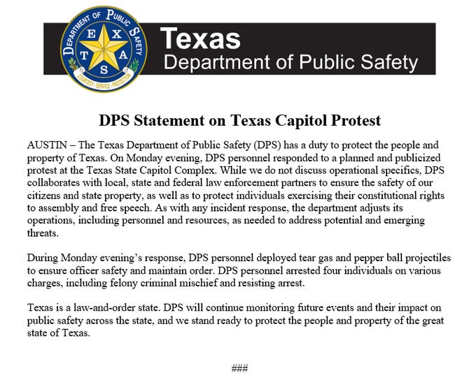 The Texas DPS position is equally blunt: violence is not tolerated.