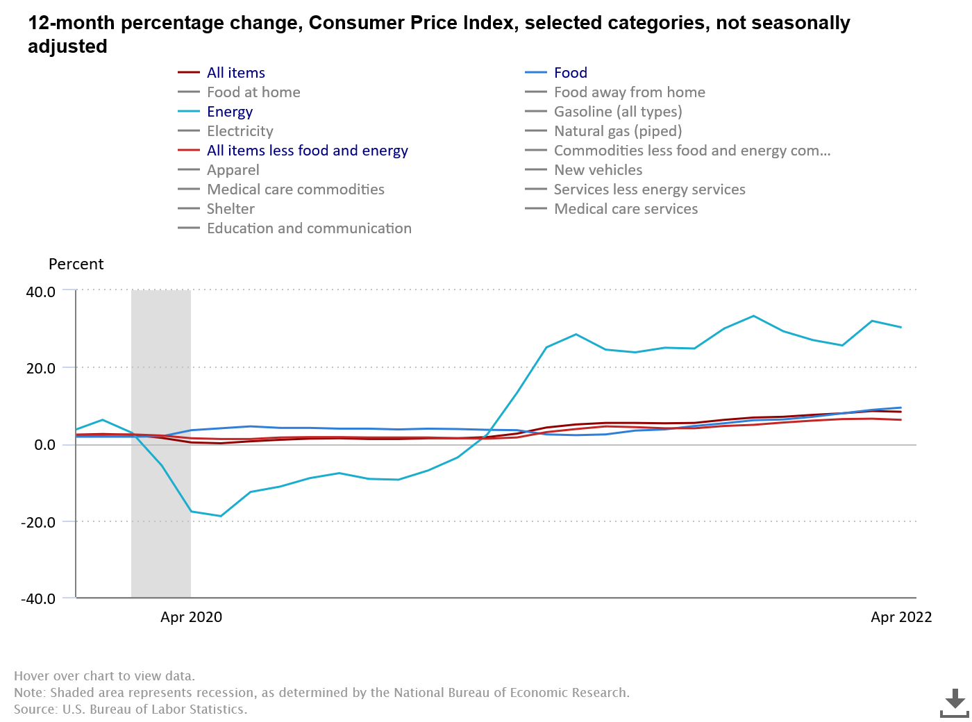 The Consumer Price Index for All Urban Consumers (CPI-U) increased 1.0 percent in May on a seasonally adjusted basis after rising 0.3 percent in April, the U.S. Bureau of Labor Statistics reported today. Over the last 12 months, the all items index increased 8.6 percent before seasonal adjustment.
