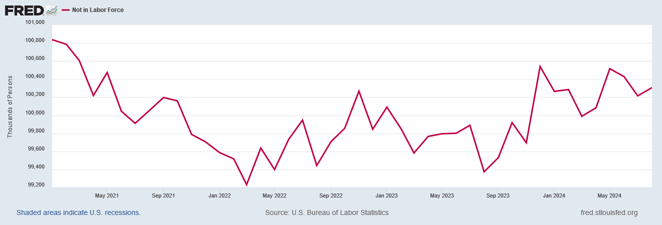 As if to drive home the point, the number of workers who have left the labor force rose again last month.