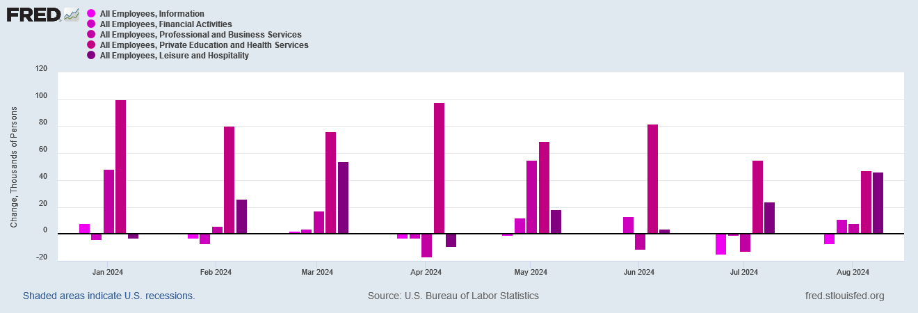 The only sector to show any real strengthening was leisure and hospitality. Other services lost steam or lost jobs.