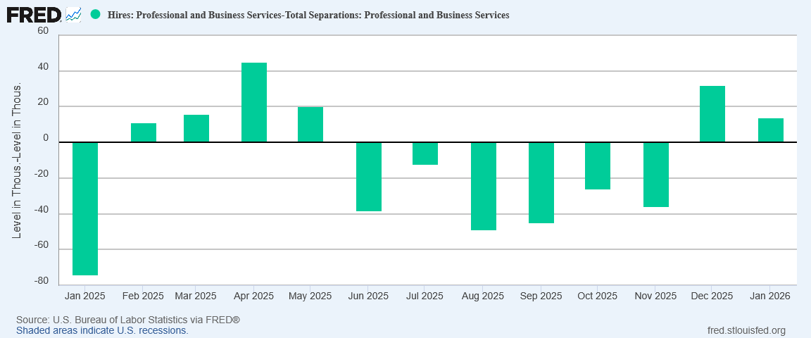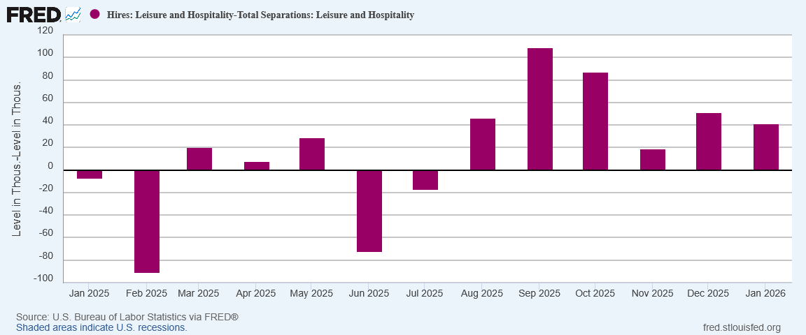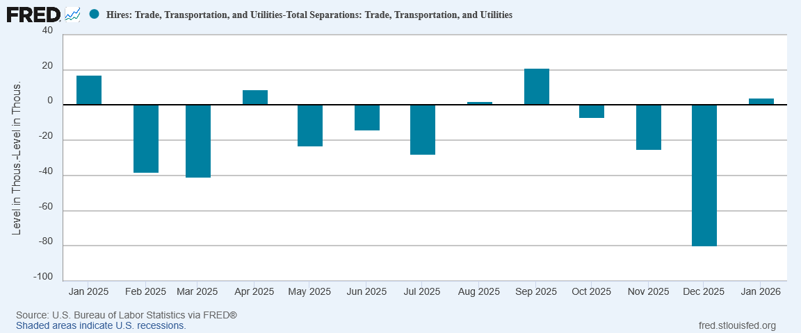 Trade, Transportation, and Utilities, another sector which had a bad 2025, also eked out marginal job gains.