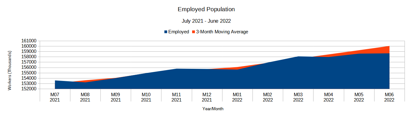 How is it that 372,000 jobs were created in June without an increase of 372,000 in the number of employed persons in the Household summary part of the Employment Situation Report? A big part of the answer is a rise in the number of workers holding down multiple jobs, which rose by 239,000 individuals on an unadjusted basis during the month of June. More people are taking second jobs even as substantial numbers of people are without a first job—a fact which by itself should put an end to any nonsense about the economy being “strong”.